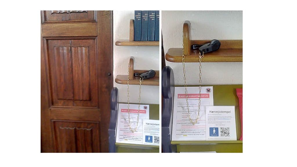 Finden Sie den Stempel: Der Stempel befindet sich in der Vedsted Kirche. Er hängt unter den Gesangbüchern links, gleich wenn Sie in die Kirche eintreten.